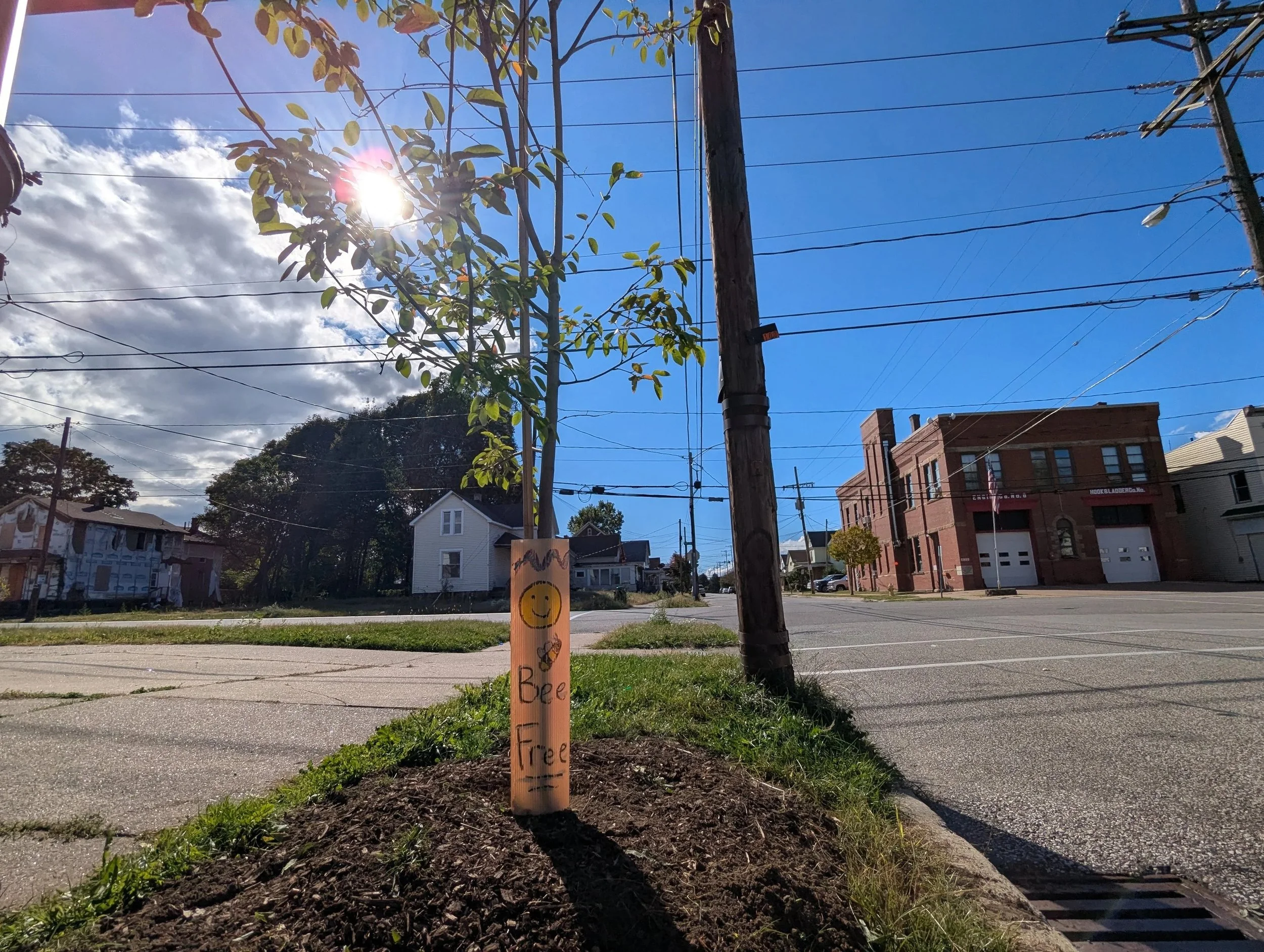 These tree shelters then wrapped around the 40 trees that our Tree Crew, Groundwork Erie staff, and volunteering neighbors spent the day planting along East Ave. Earlier in that week, Tree Crew mentors spent time talking to and teaching the youth how to properly plant and care for trees. This knowledge and care for our Earth was strengthened not only on this Saturday, but each time the Tree Crew came in for work.